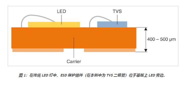 如今LED是建筑物内外照明系统中最为先进技术,此外,LED现在在智能手机中很常见。用于手电筒和相机闪光灯功能,而各种车辆的车头灯和其他照明系统同样基于这种照明技术。尽管LED具有高能效和寿命长等巨大优势,但他仍有一个严重的缺点,与所有半导体一样,它们对静电放电(ESD)非常敏感。