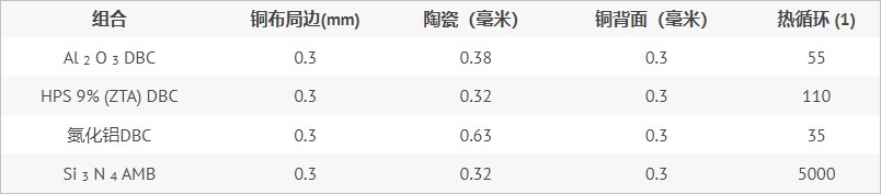 调查表明,与传统的 HPS9% DBC 陶瓷材料相比,使用 Si3N4 AMB(活性金属钎焊)技术的 Si3N4 可靠性提高了 50 倍。Si3N4 陶瓷具有较高的机械性能,特别是其极高的断裂韧性 (K1C),有助于提高其可靠性。此外,Si3N4 更高的强度使其能够以更薄的横截面使用,从而使其具有与 AlN 相当的热性能。